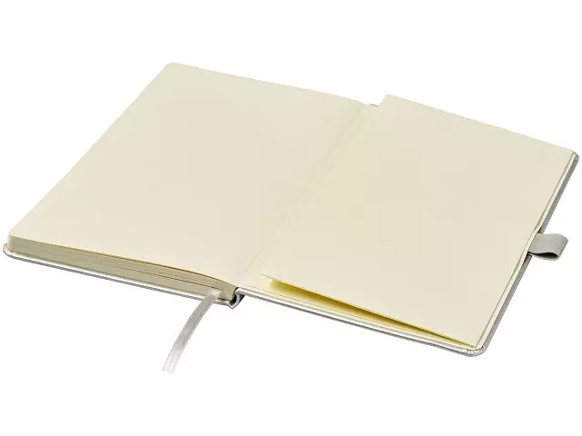 Записная книжка Nova формата A5 с переплетом. Записная книжка из искусственной кожи формата A5 (14,2 x 21,4 см) с резинкой, лентой-закладкой, петлей для ручки и задним карманом. Состоит из 96 листов линованной бумаги кремового цвета плотностью 80 г/м2 и поставляется в белом футляре Journalbook. Бумага, имитирующая кожу.