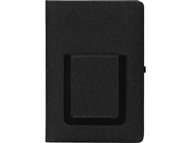 Стильный современный блокнот формата А5. На передней обложке расположен удобный карман для мобильного телефона, бумаг и визиток. Специальная подкладка обложки делает блокнот мягким на ощупь. Покрытие обложки имитирует текстуру текстиля, не скользит и отлично подходит для нанесения логотипа.