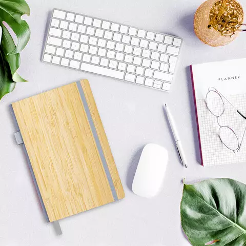 Ежедневник недатированный А5 145х213мм BRAUBERG "Bamboo", резинка, держатель, 160л, коричневый, 117137