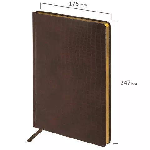 Ежедневник недатированный БОЛЬШОЙ ФОРМАТ (175х247 мм) В5, BRAUBERG "Alligator", под матовую крокод. кожу, 160л, крем.блок, т-корич, 124969
