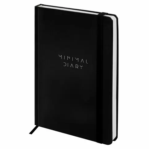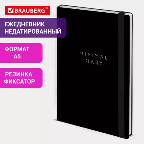 Ежедневник недатированный с резинкой А5 145х203мм, BRAUBERG, твердый, черный, 160л, Minimal, 116299