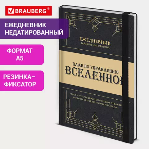 Ежедневник недатированный с резинкой А5 145х203мм, BRAUBERG, твердый, 160л, Secret Emperor, 116304