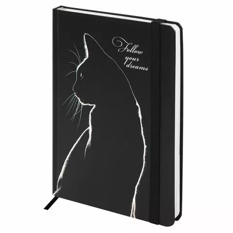 Ежедневник недатированный с резинкой А5 145х203мм, BRAUBERG, твердый, 160л, Black cat, 116305