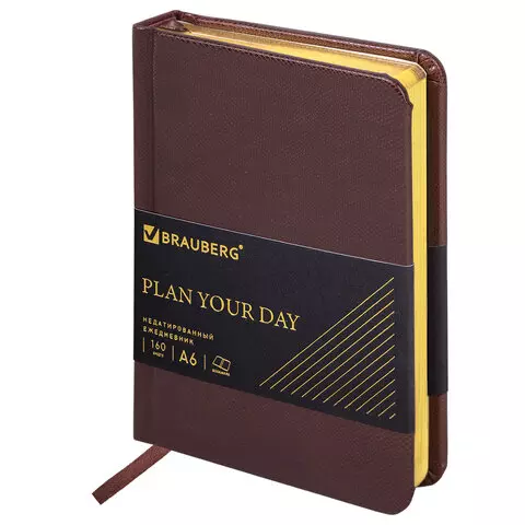 Ежедневник недатированный В6 130х185мм BRAUBERG "Gleam", под кожу, 160л, желтый, 116222