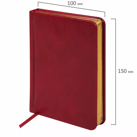 Ежедневник недатированный А5 (138x213 мм) BRAUBERG "Wood", кожзам, резинка, 136 л., бордовый, 111675