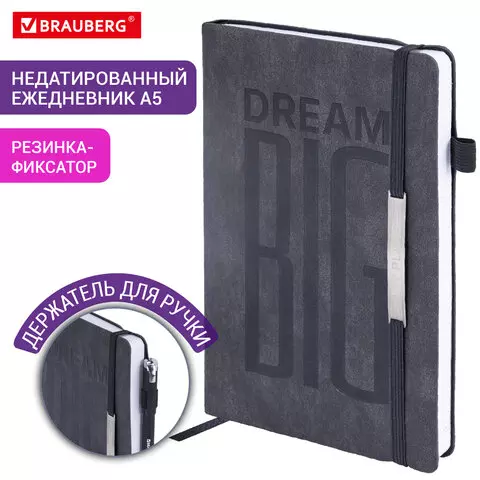 Ежедневник недатированный А5 138х213мм BRAUBERG "BeStyle", под кожу, резинка, держатель, 160л, графитовый, 116215