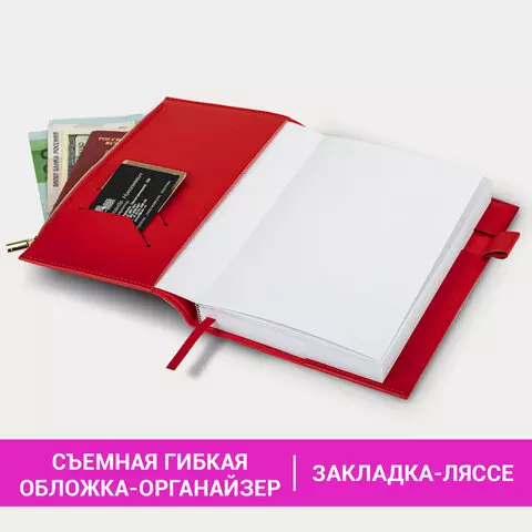 Ежедневник недатированный А5 145х220мм, BRAUBERG Zipline, под кожу, карман-молния, 160л, красный, 116248