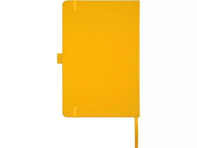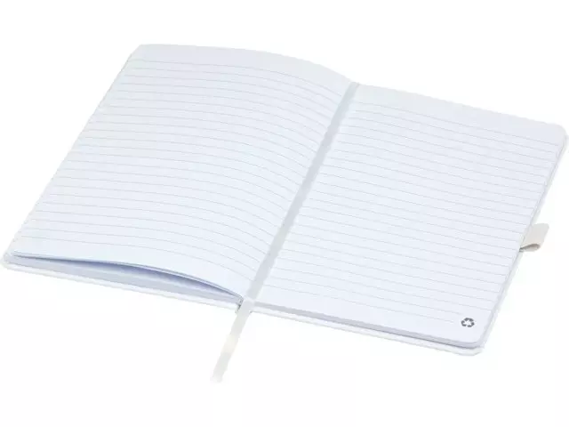 Блокнот формата А5 с обложкой из переработанного ПЭТ. Содержит 80 листов в линию плотностью 70 г/м², изготовленных из переработанной бумаги, с петлей для ручки и лентой-закладкой. Может быть дополнен шариковой ручкой Honua 107757 из переработанного ПЭТ. Переработанный PET пластик.