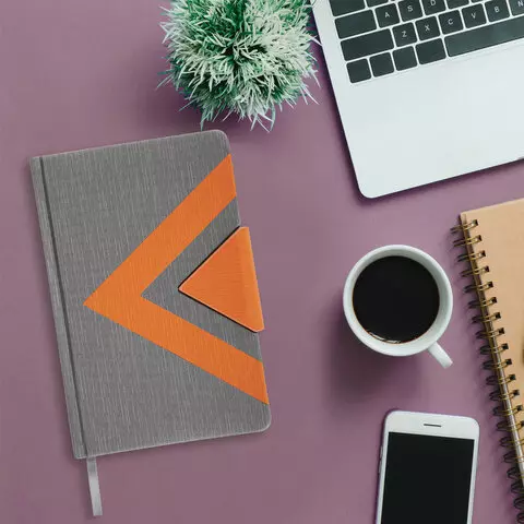 Внутренний блок включает 160 листов белой бумаги плотностью 70 г/м2. Каждая страничка имеет перфорированный угол. Благодаря стандартному формату А5 ежедневник удобно использовать как в офисе, так и на выездных деловых встречах. Твердая обложка, стилизованная под гладкую кожу, подходит для горячего тиснения. Снабжен магнитной застежкой, благодаря чему ежедневник не откроется в сумке или портфеле. Форзац ежедневника представлен картами мира и России. Дополнением является закладка-ляссе, с помощью которой при необходимости можно быстро открыть ежедневник на нужной странице. Помимо прочего ежедневник снабжен справочным материалом. Выполнен в комбинации из двух цветов - серый и оранжевый.