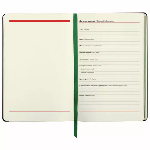 Внутренний блок включает 136 листов тонированной бумаги цвета "слоновая кость" плотностью 70 г/м2. Благодаря стандартному формату А5 ежедневник удобно использовать как в офисе, так и на выездных деловых встречах. Твердая (книжная) обложка с полноцветной печатью и тиснением золотой фольгой делает ежедневник неповторимым и запоминающимся. Срез ежедневника прокрашен, что придает ему особый шарм. Дополнением является закладка-ляссе, с помощью которой можно быстро открыть ежедневник на нужной странице.