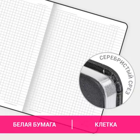 Внутренний блок включает 80 листов белой бумаги плотностью 70 г/м2. Благодаря стандартному формату А5 блокнот удобно использовать как в офисе, так и на выездных деловых встречах. Твердая (книжная) обложка с полноцветной печатью и тиснением серебряной фольгой делает блокнот неповторимым и запоминающимся. Срез блокнота фольгирован серебряной фольгой, что придает ему особый шарм. Дополнением является закладка-ляссе, с помощью которой можно быстро открыть блокнот на нужной странице.