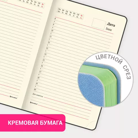Недатированный ежедневник BRAUBERG "Metropolis Mix" найдет применение как в офисе, так и на выездных деловых встречах. Его можно начинать использовать с любого дня и проставлять даты на свое усмотрение.