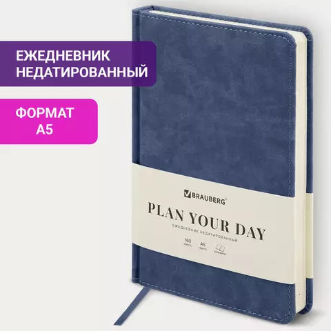 Ежедневник недатированный А5 138х213 мм BRAUBERG "Status", под кожу, 160 л., темно-синий, 113362