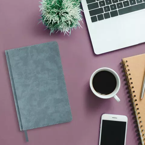 Ежедневник недатированный А5 138х213 мм BRAUBERG "Status", под кожу, 160 л., серо-голубой, 113365