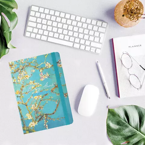 Ежедневник недатированный с резинкой А5 (145х203 мм), BRAUBERG, твердый, фольга, 128 л., "Almond", 114568