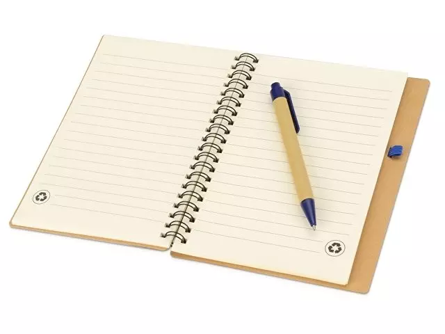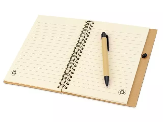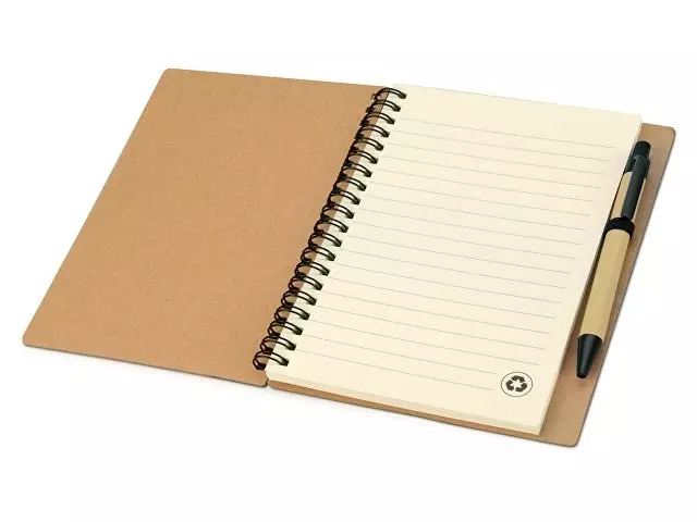 Блокнот Priestly с ручкой. Блокнот с 60 листами линованной бумаги вторичной переработки и ручкой под цвет блокнота. На обложку блокнота и ручку можно нанести яркий логотип.