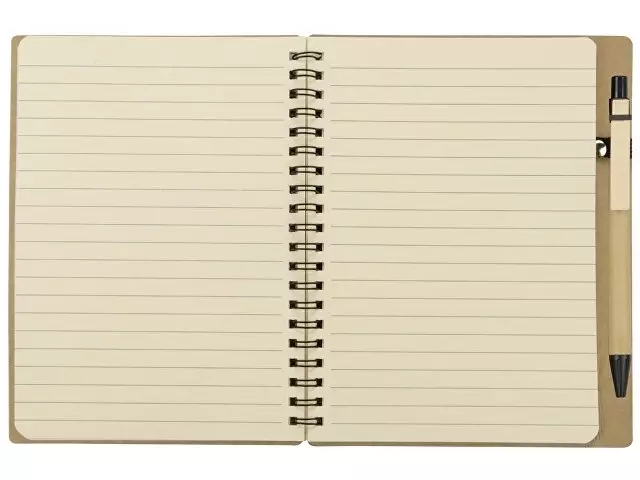 Блокнот «Дейзи» сделан из бумаги и картона и переплетен на пружине. В обложке блокнота предусмотрено окошко, в которое можно поместить визитную карточку или полиграфическую вставку. В комплекте с блокнотом идет ручка, которая вставляется в петельку сбоку. Блокнот с ручкой «Дейзи» – универсальный сувенир в эко-стиле.
