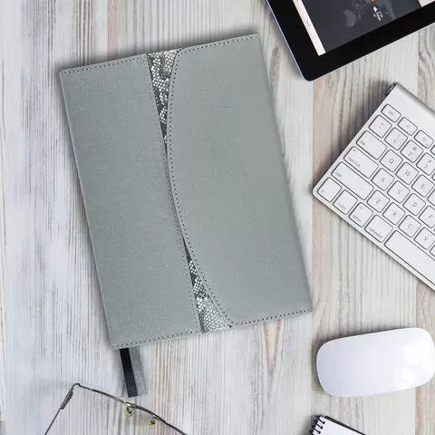 Ежедневник недатированный А5 155х213 мм BRAUBERG "Wild", под кожу, магнит, 160 л., SNAKE, серый, 116234