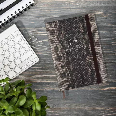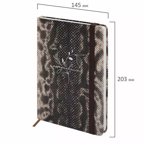 Ежедневник недатированный с резинкой А5 145х203мм, BRAUBERG, твердый, 128л, Snake print, 116286