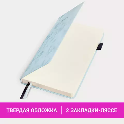 Ежедневник недатированный А5 138x213мм BRAUBERG Velvet, резинка, держатель, 160л, серо-голубой, 116245