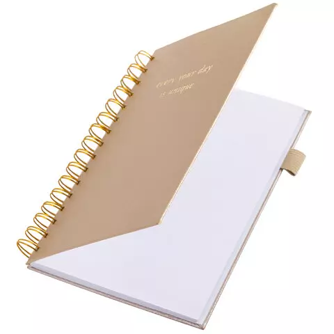 Бизнес-тетрадь на гребне А5 148х216мм BRAUBERG Calipso под кожу, резинка, клетка, 80л, бежевый, 116254