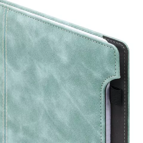 Блокнот А5 165x218мм BRAUBERG Perfect, под кожу софт-тач, держатель для ручки, 80 листов, клетка, серо-голубой, 116615