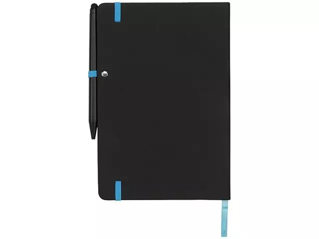 Блокнот Noir Edge среднего размера. Современный и стильный черный блокнот с мягкой на ощупь обложкой. Цветной край и цветные маркеры страниц, застежка-держатель для ручки. Предлагается с черной шариковой ручкой-стилусом. Блокнот содержит 96 листов линованной бумаги (70 г/м²) кремового цвета. ПУ.