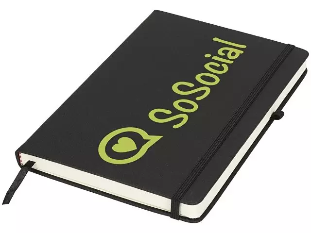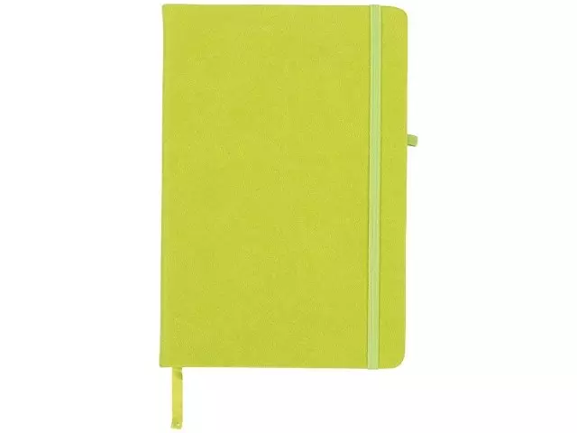 Блокнот Rivista среднего размера. Блокнот Rivista отличается стильным современным дизайном с высококачественной обложкой, идеально подходящей для нанесения логотипа и информации вашей компании. Предлагаются современные цвета. Также предусмотрена эластичная застежка, держатель для ручки, лента-закладка и внутренний кармашек на задней стороне обложки. Содержит 128 листов линованной бумаги (70 г/м²) кремового цвета. ПУ.