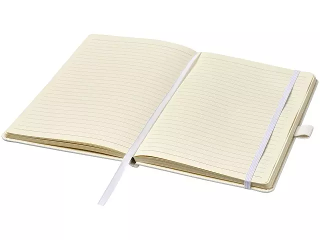 Записная книжка Nova формата A5 с переплетом. Записная книжка из искусственной кожи формата A5 (14,2 x 21,4 см) с резинкой, лентой-закладкой, петлей для ручки и задним карманом. Состоит из 96 листов линованной бумаги кремового цвета плотностью 80 г/м2 и поставляется в белом футляре Journalbook. Бумага, имитирующая кожу.