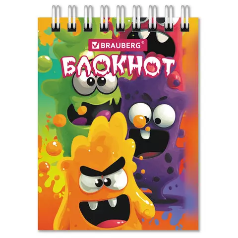 Блокнот МАЛЫЙ ФОРМАТ А7 75х105мм, 40л, гребень, картон, клетка, BRAUBERG МОНСТРИКИ, 116998