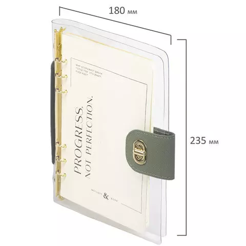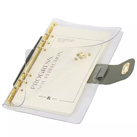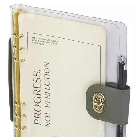 Блокнот А5 180x235мм BRAUBERG "Fabulous", гибкий, на кольцах, застежка, 80л, оливковый, 116195