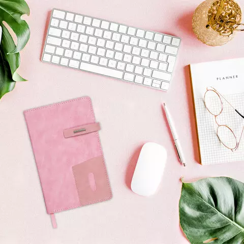Ежедневник недатированный А5 138х213мм BRAUBERG "Cowboy", под кожу, застежка 160л, розовый, 116199