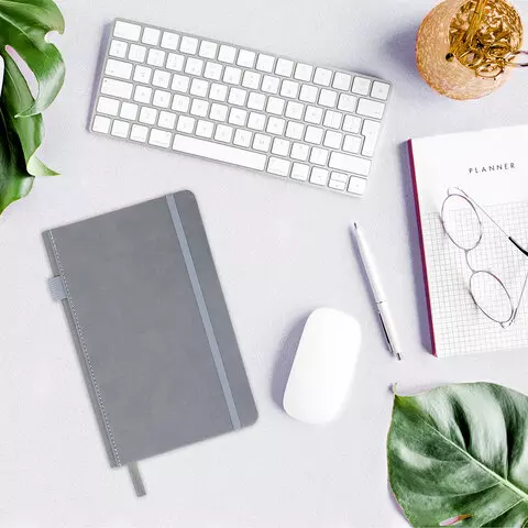 Блокнот А5 135x212мм BRAUBERG "Soft touch" под кожу, резинка, держатель, 80л клетка, серый, 117146