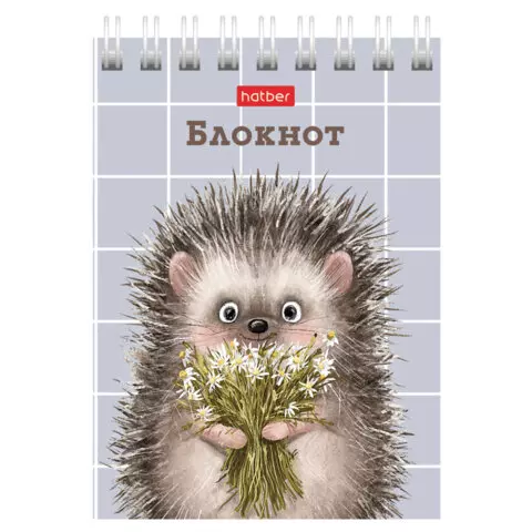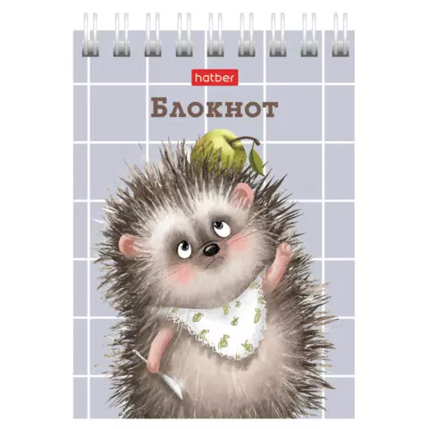 Блокнот МАЛЫЙ ФОРМАТ А7, 40 л., гребень, картон, клетка, HATBER, "Хорошо быть ёжиком", 081183, 40Б7В1гр