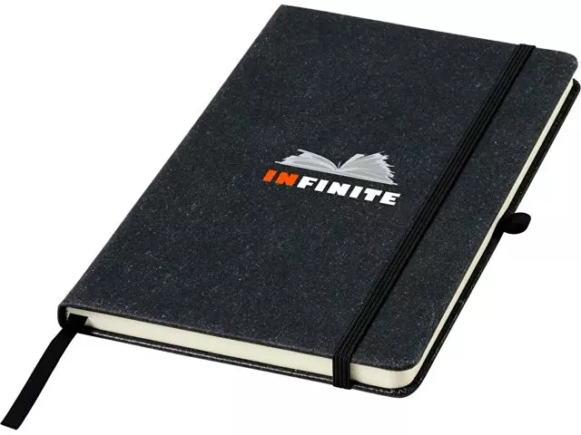 Блокнот Atlana размером A5 с отделкой из кусочков кожи. С эластичной лентой, петлей для ручек, лентой-закладкой, 80 листов, с бумагой 80 г/см в линейку. Кожа.