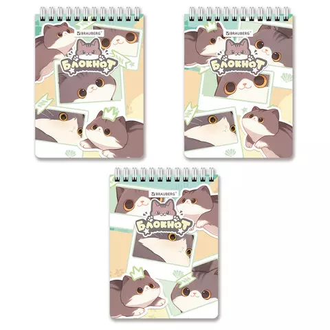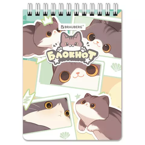 Блокнот МАЛЫЙ ФОРМАТ (108х145 мм) А6, 40 л., гребень, картон, клетка, BRAUBERG, "Милые котята", 114391
