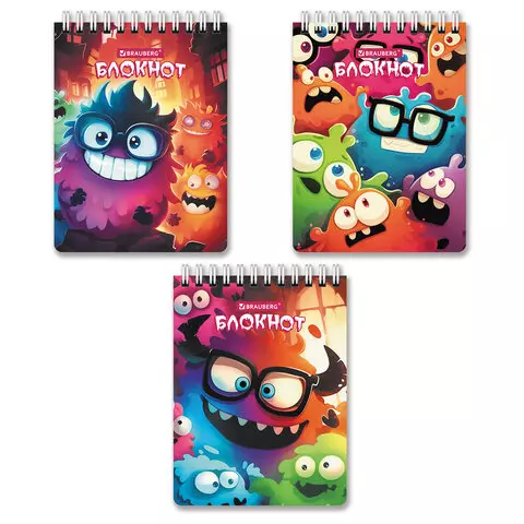 Блокнот МАЛЫЙ ФОРМАТ (105x152 мм), А6, 40 л., гребень, фольга, TWIN лак, клетка, "МИКС 3" (8 видов), 099074
