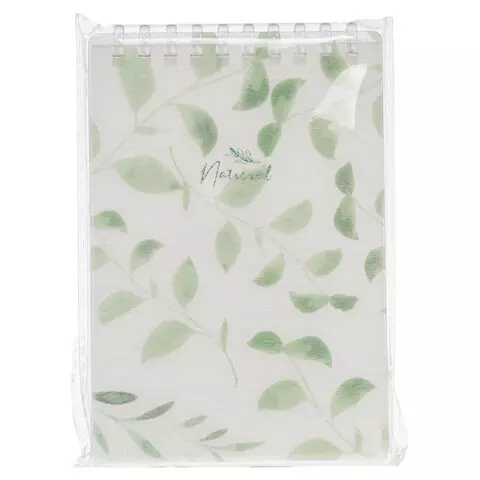 Блокнот МАЛЫЙ ФОРМАТ А6 80 л., мягкий гребень, пластик, фольга, клетка, HATBER, NATURAL LEAVES, 090242, 80Б6A1мс_33480