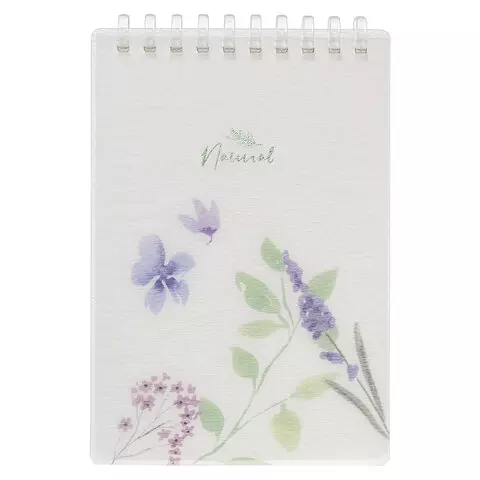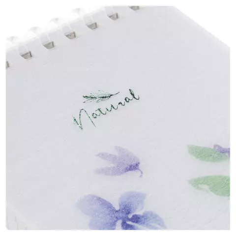 Блокнот МАЛЫЙ ФОРМАТ А6 80 л., мягкий гребень, пластик, фольга, клетка, HATBER, NATURAL FLOWERS, 090108, 80Б6A1мс_33479