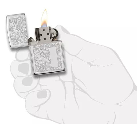 Зажигалка ZIPPO Venetian® с покрытием High Polish Chrome, латунь/сталь, серебристая, глянцевая, 36x12x56 мм