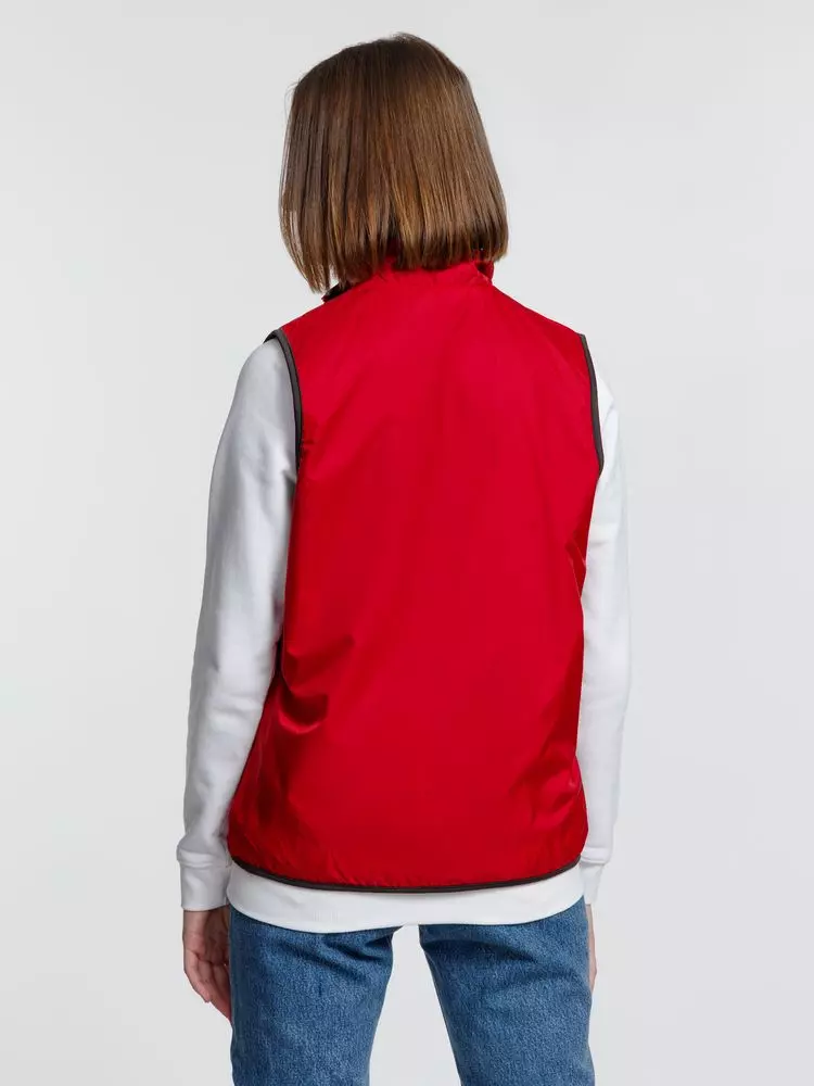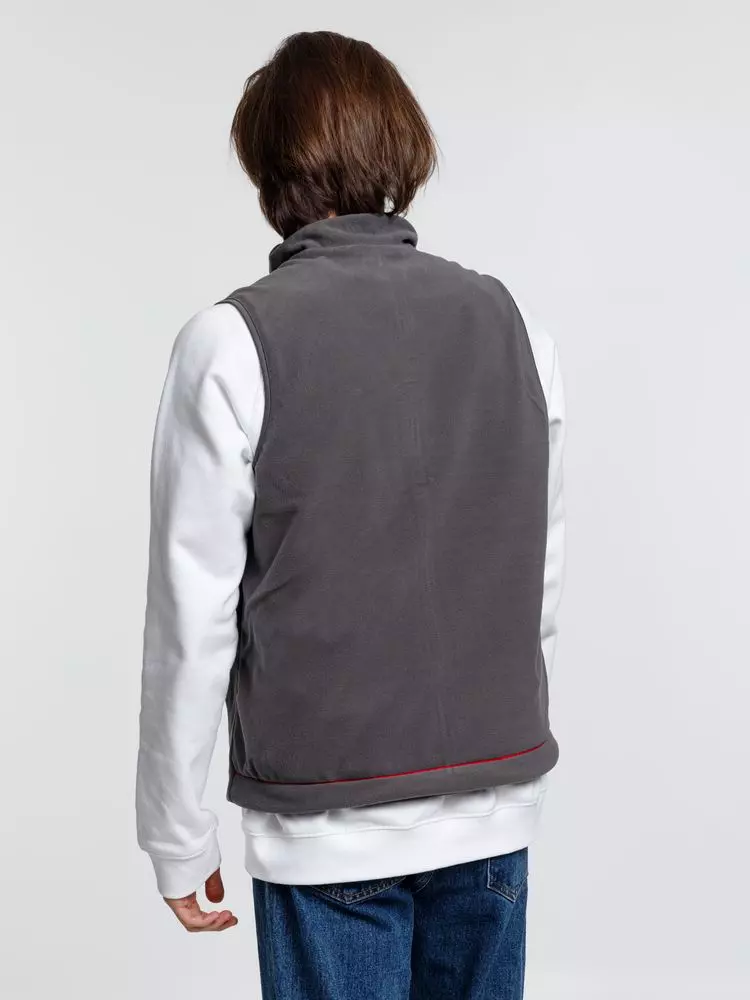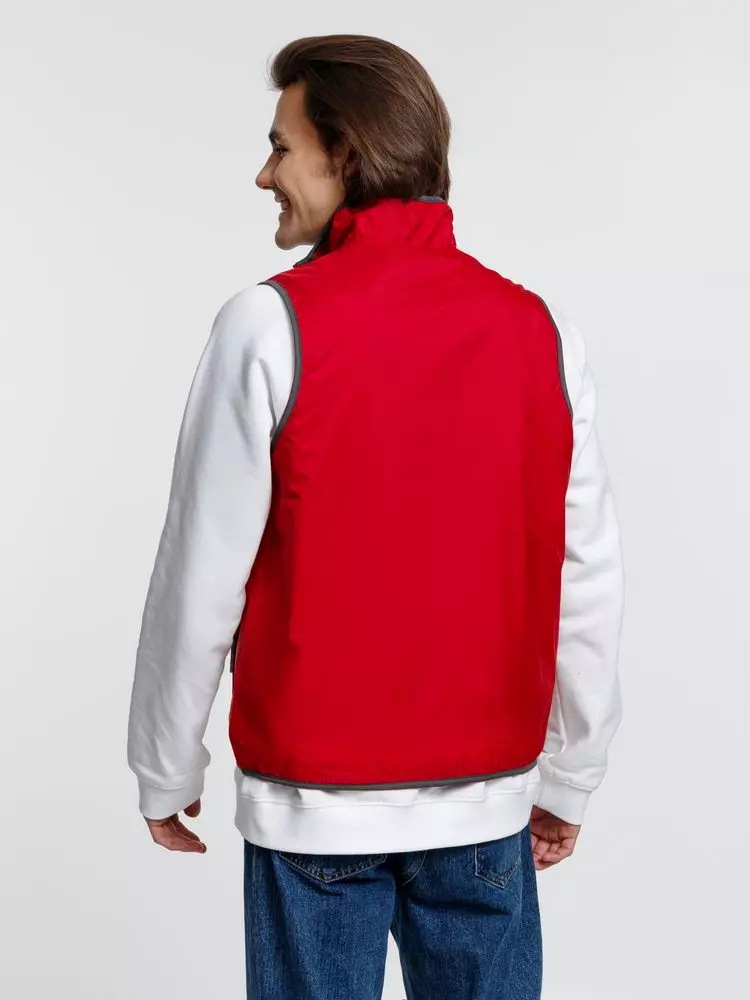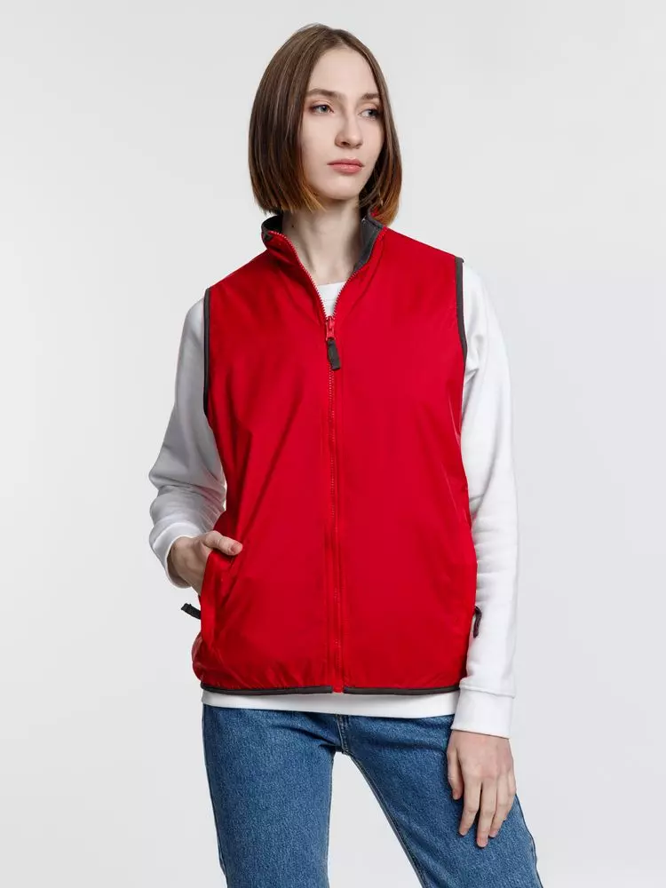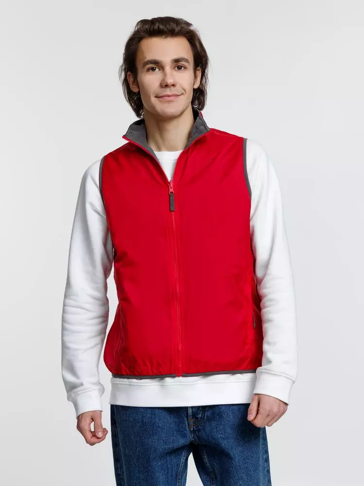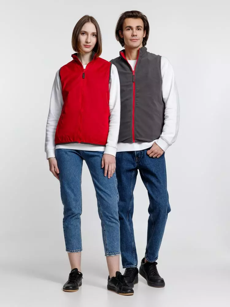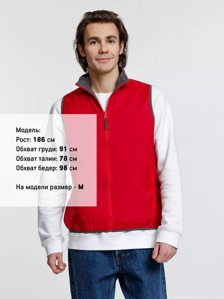 Двусторонний жилет унисекс с водостойкой пропиткой и флисом внутри. Воротник стойкаДва передних кармана на молнииКрая изделия обработаны эластичной бейкойДля удобства нанесения логотипа можно частично отстегнуть подкладкуТаблица размеров, смXSSMLXLXXLA525558616467B646668707274Допускаются отклонения в 5% от указанных параметров по размеру и цвету.