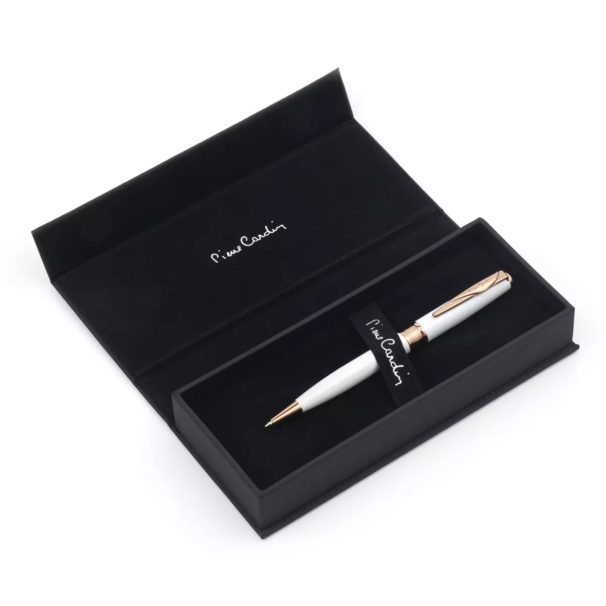 Ручка шариковая Pierre Cardin, SECRET Business. Корпус и колпачок - латунь и лак. Отделка и детали дизайна - сталь, позолота. Цвет - белый. Упаковка B