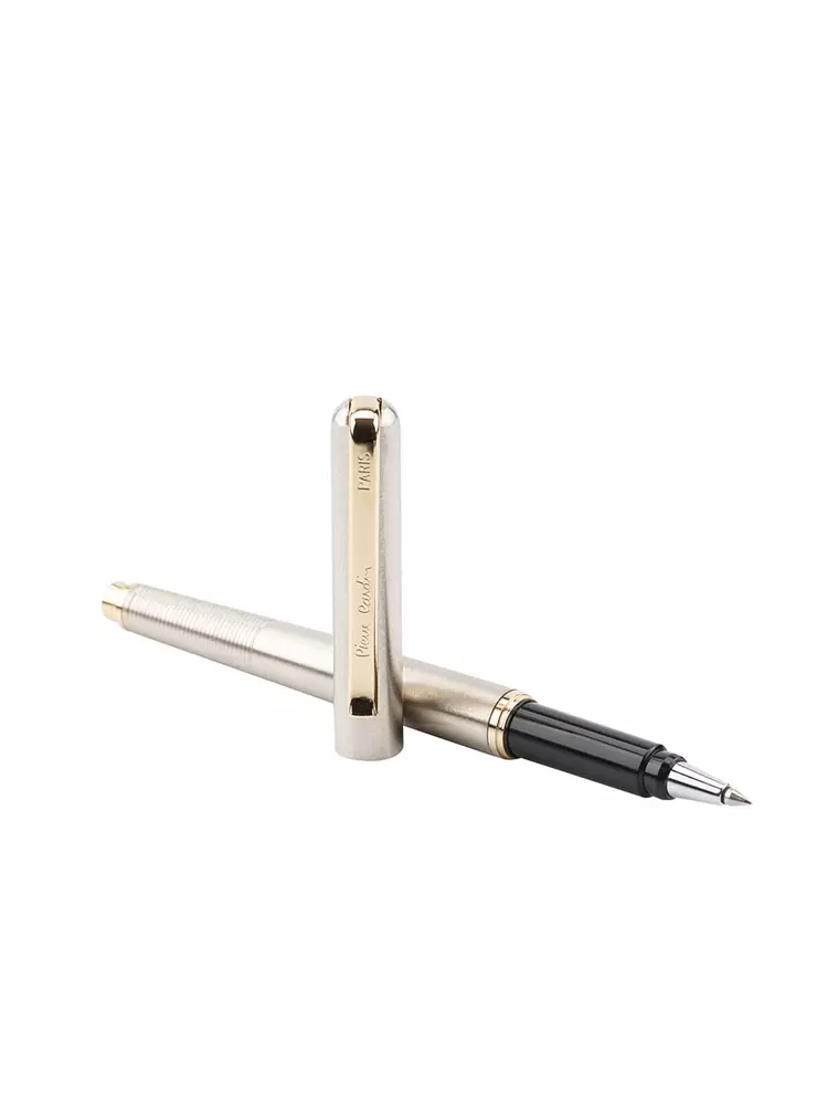 Ручка-роллер Pierre Cardin GAMME. Корпус - латунь. Отделка - стальное покрытие. Детали дизайна - сталь с позолотой. Съемный колпачок. Цвет - стальной. Упаковка E.