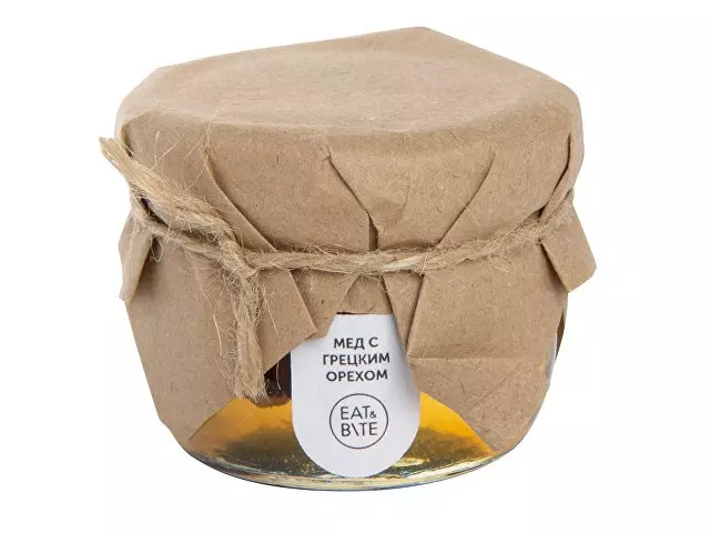 Мед и орехи прекрасно сочетаются друг с другом, образуя оригинальный и запоминающийся вкус. Медовый десерт идеально подойдет для чаепития, поэтому подобный подарок можно также дополнить чаем. Так как продукт состоит из натуральных ингредиентов, возможно его засахаривание.