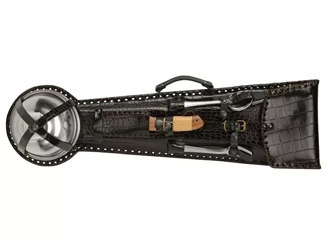Набор для пикника в кожаном чехле ручной работы. В комплект входит: Тарелка 500 мл d16 х 7 см - 6шт Стопка d5,2 х 6 см - 6шт Нож 26 х 4 х 2,5 см - 1шт Ложка 19,3 х 4,5 х 3 см - 6шт Вилка 19,3 х 2,5 х 2 см - 6шт Топор 39,5 х 14,5 х 3,2 см - 1шт Ножки для мангала 50,5 х 31 х 1 см - 2шт Шампур d2,2 х 66 см - 6шт