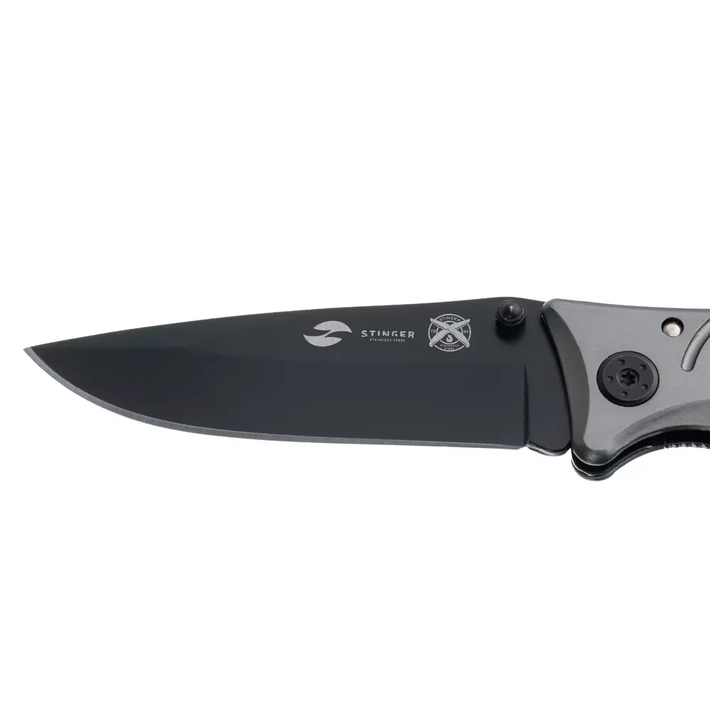Нож складной Stinger, 90 мм - длина клинка, (черный), рукоять: сталь/алюминий (черный), коробка картон
