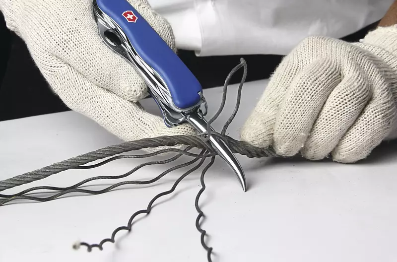 Нож перочинный VICTORINOX Skipper Pro, 111 мм, 12 функций, оранжевый шнурок на руку, фиксатор лезвия "liner lock", стальное лезвие с серейторной заточкой, рукоять из синего нейлона