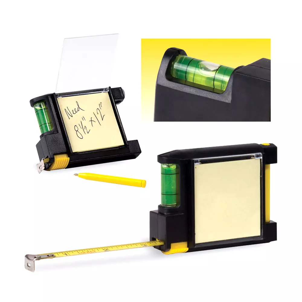 Мультифункциональная рулетка Йена 4 в 1 включает рулетку 2м + уровень + карандаш + компактный блокнот. Размер - 8см x6см x2.4 см