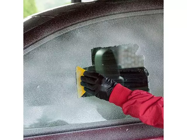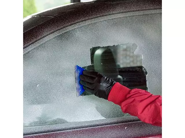 Треугольный скребок для удаления льда с лобового стекла, имеющий большую площадь для декорирования. Сделано в Великобритании из переработанного полистирольной пластмассы. Переработанный HIPS пластик.