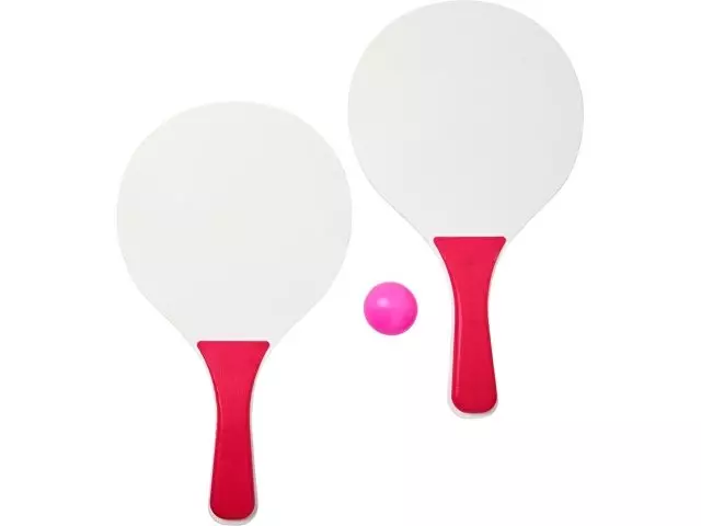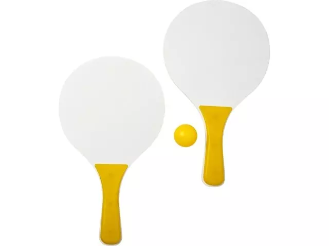 Набор для пляжных игр Bounce. С этим набором пляжных игр, предлагаемым в широкой цветовой гамме, всегда весело. Этот прочный набор пляжных игр изготовлен из дерева МДФ с цветной ручкой из полипропилена. Упаковано вместе с мягким шариком одного цвета в сетчатую упаковку, что позволяет провести веселый день на пляже. МДФ.